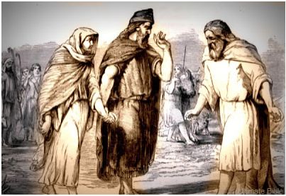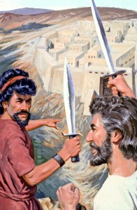 「到第三天,眾人正在疼痛的時候,雅各的兩個兒子,就是底拿的哥哥,西緬和利未,各拿刀劍,趁著眾人想不到的時候,來到城中,把一切男丁都殺了。」(創34:25)