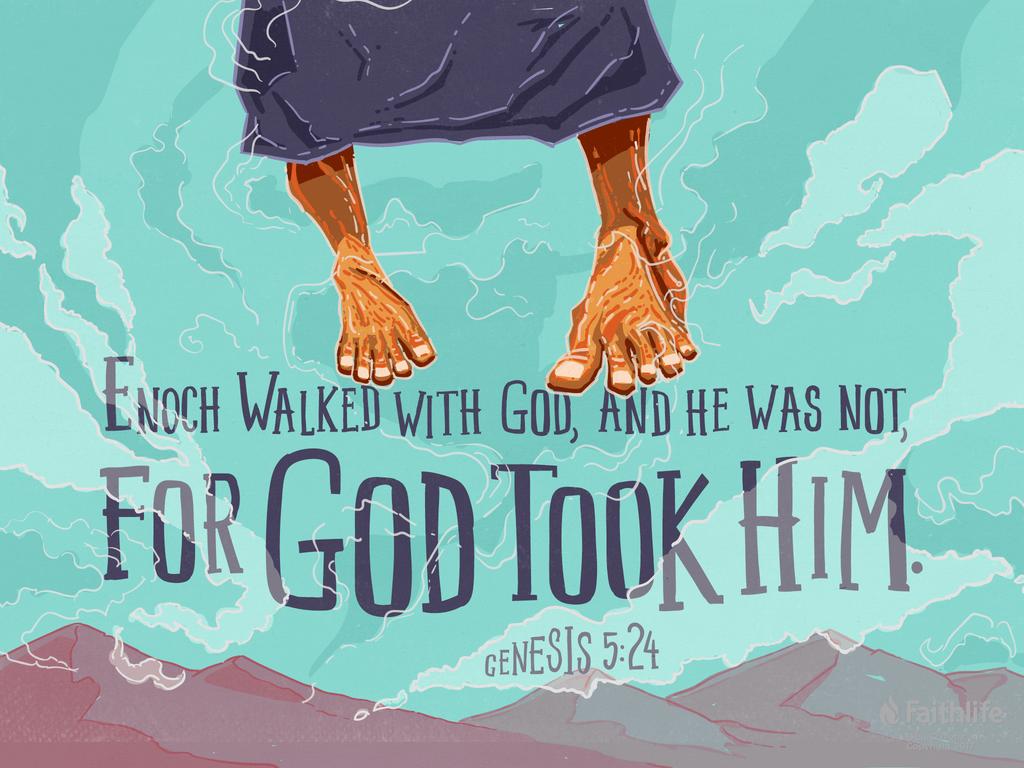 「以諾生瑪土撒拉之後,與神同行三百年,並且生兒養女。…以諾與神同行,神將他取去,他就不在世了。」(創5:22, 24)