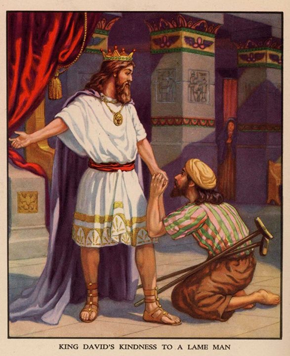 「大衛說:『你不要懼怕,我必因你父親約拿單的緣故施恩與你,將你祖父掃羅的一切田地都歸還你;你也可以常與我同席吃飯。』」(7)