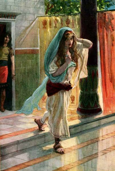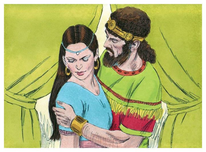 「一日,太陽平西,大衛從床上起來,在王宮的平頂上遊行,看見一個婦人沐浴,容貌甚美,」(2)