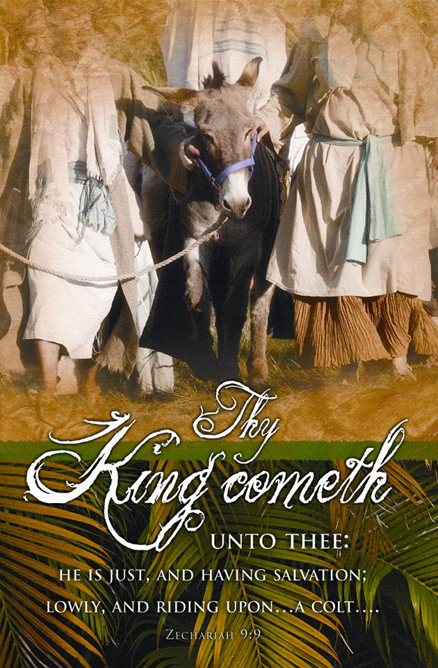 「錫安的民哪,應當大大喜樂;耶路撒冷的民哪,應當歡呼。看哪,你的王來到你這裡!他是公義的,並且施行拯救,謙謙和和地騎著驢,就是騎著驢的駒子。」(9)