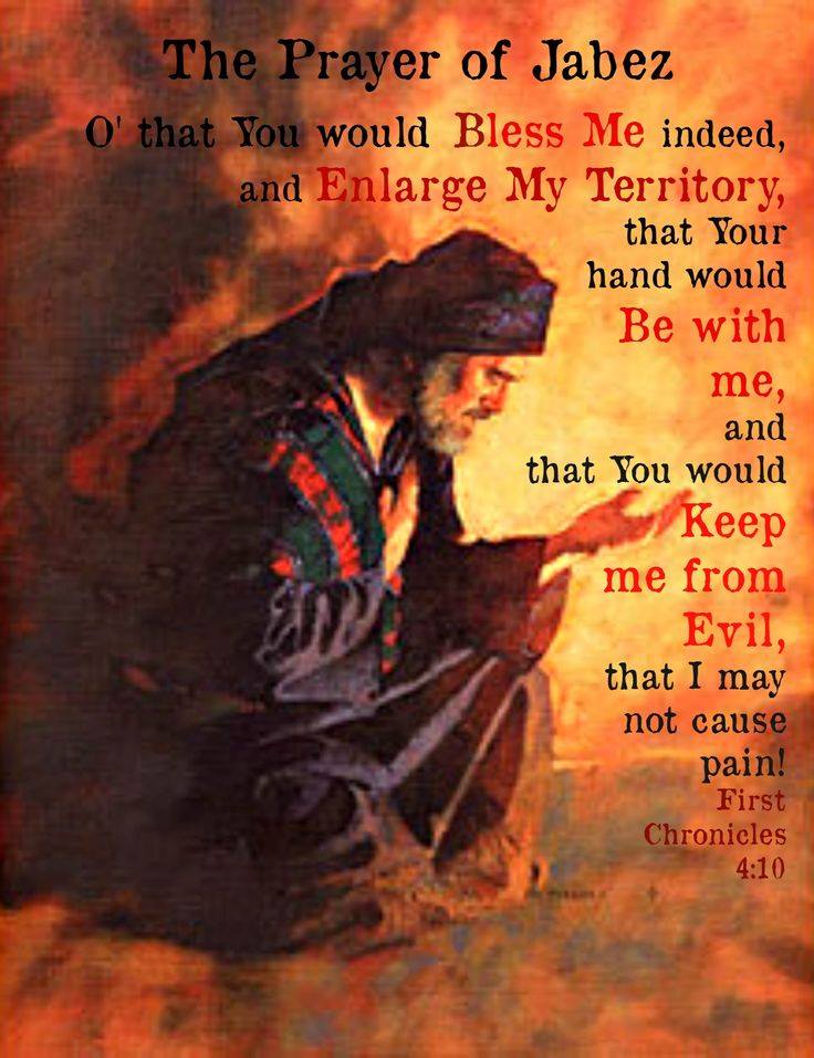 「雅比斯求告以色列的神說:『甚願你賜福與我,擴張我的境界,常與我同在,保佑我不遭患難,不受艱苦。』神就應允他所求的。」(10)