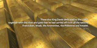 「大衛王將這些器皿,並從各國奪來的金銀,就是從以東、摩押、亞捫、非利士、亞瑪力人所奪來的,都分別為聖獻給耶和華。」(11) 16