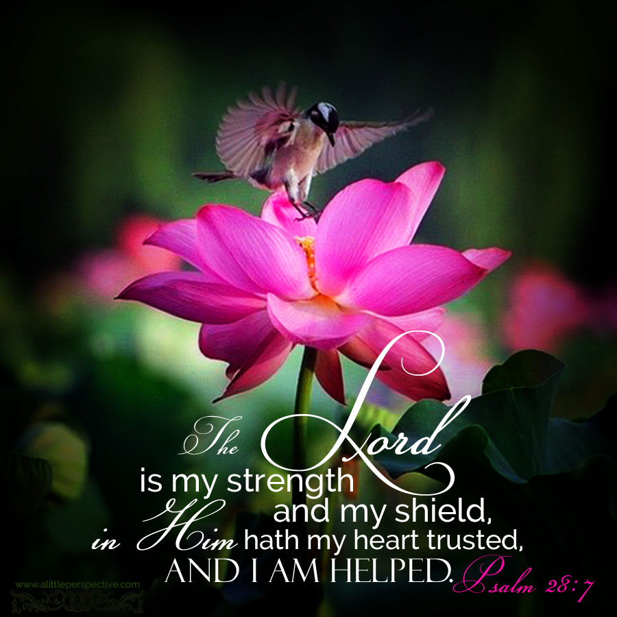 「耶和華是我的力量,是我的盾牌;我心裡倚靠他就得幫助。所以我心中歡樂,我必用詩歌頌讚他。」(7)
